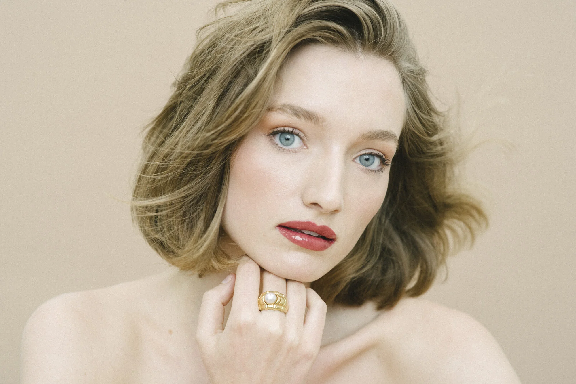 The backdrop was a new addition as well. I’ve always shot on white, but wanted to bring in some warmth, and on a whim I ordered a “hazelnut” coloured paper backdrop from Wex, and I didn’t know how it would look until we started to shoot… and I’m in love. The warmth of the backdrop matches itself so well to the models’ skin tones.