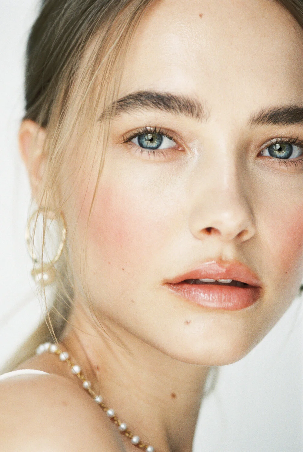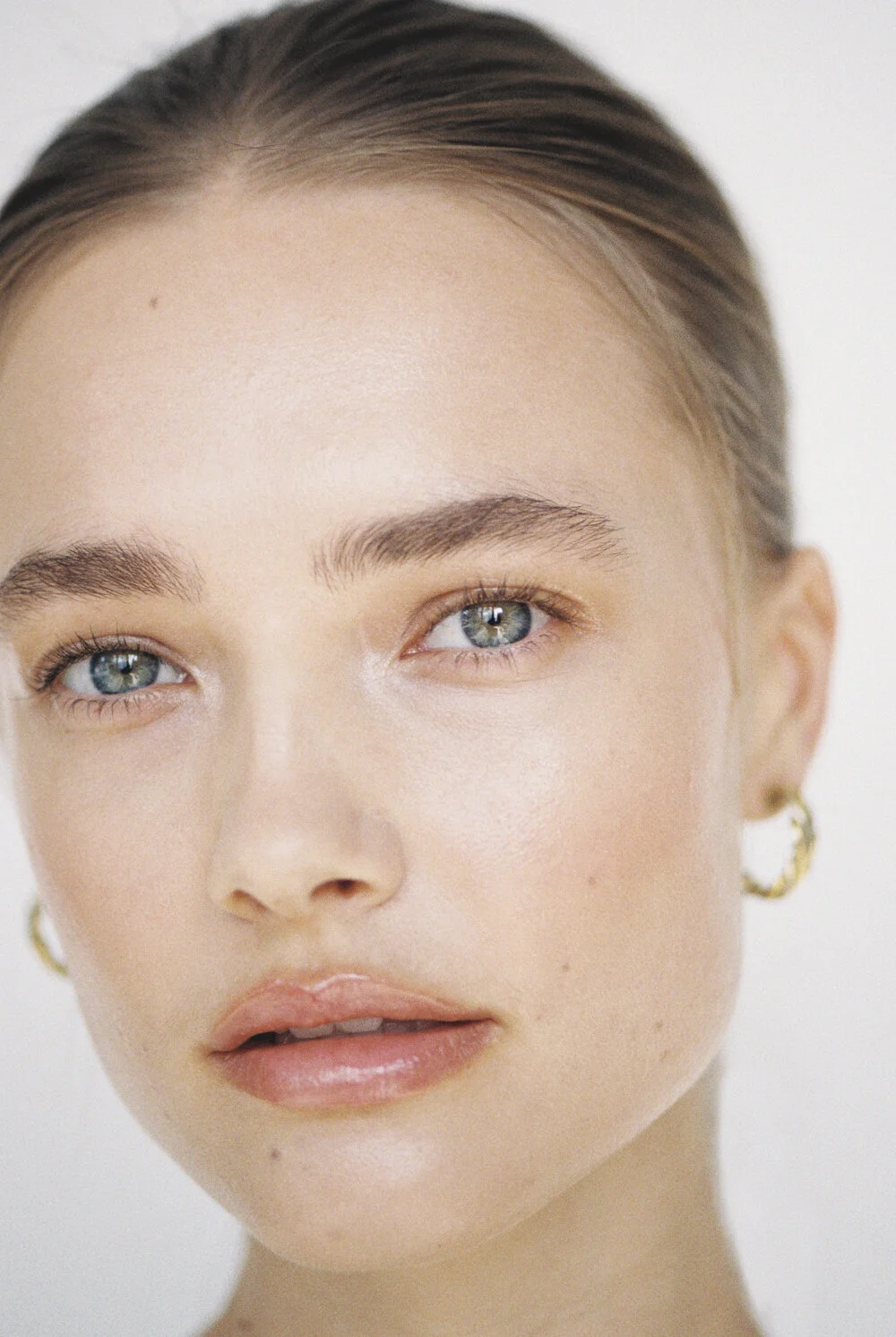 I wanted to create a beauty story that felt clean, fresh, and bright, in the way that I think most women wish their skin looked every day. I worked hard with make up artist, Abigail Lemar, to create looks that were both eye catching, but felt warm, dewy and clean. Shooting on 35mm film felt l like the natural path for these images too - adding such a beautiful quality to model Lillian’s already beautiful skin texture!